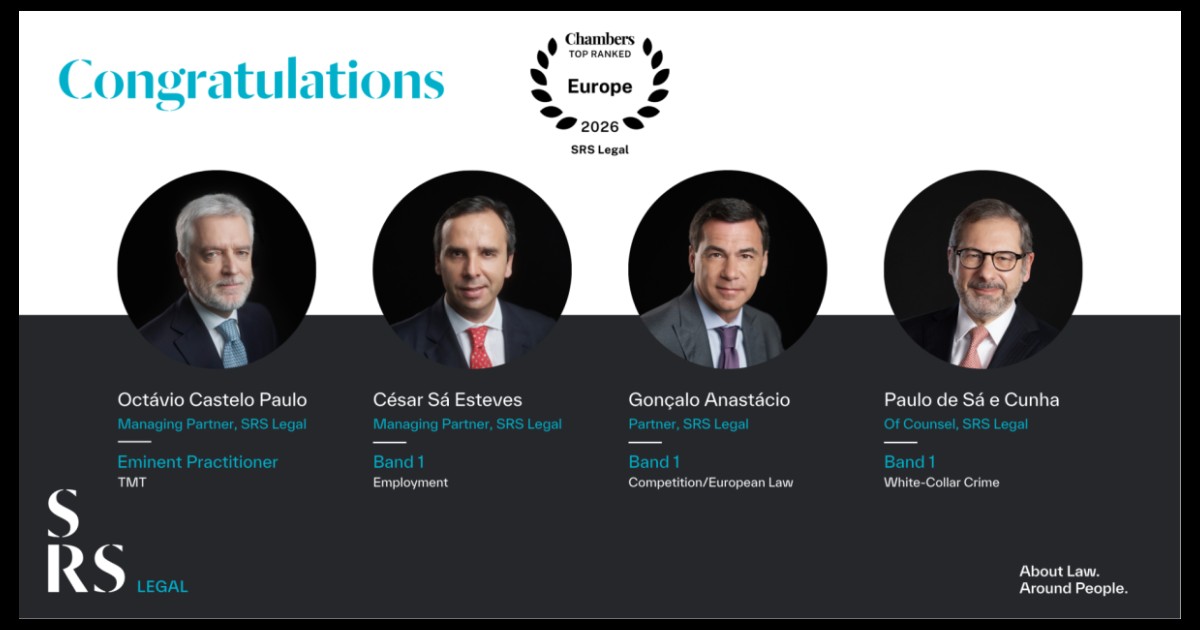 It has also recognised SRS Legal partners Octávio Castelo Paulo ('TMT'), César Sá Esteves ('Employment'), Gonçalo Anastácio ('Competition/European Law') as well as the Of Counsel Paulo de Sá e Cunha ('White-Collar Crime') in Band 1, the highest category.