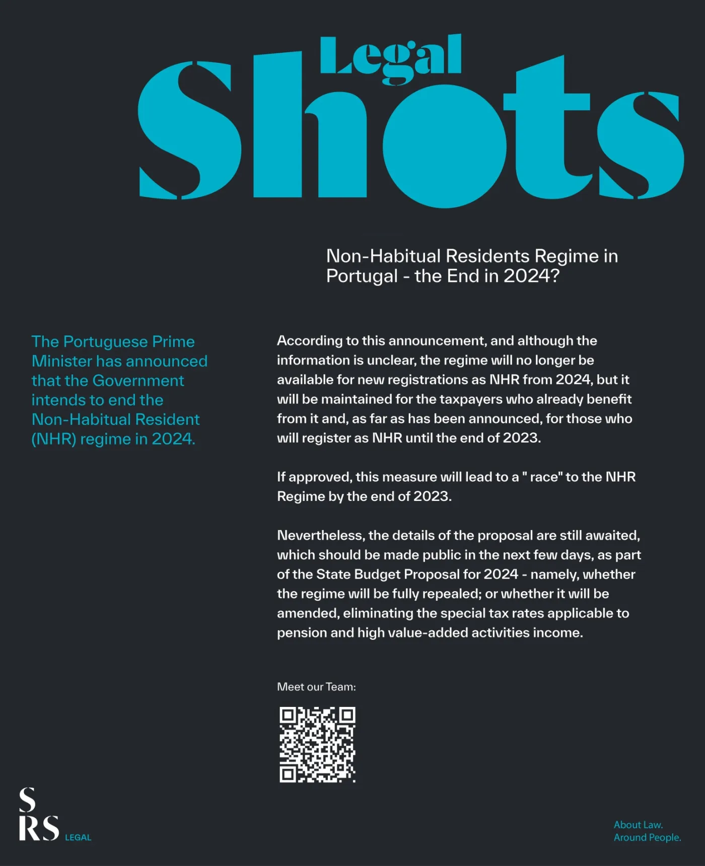 The Portuguese Prime Minister has announced that the Government intends to end the Non-Habitual Resident (NHR) regime in 2024.