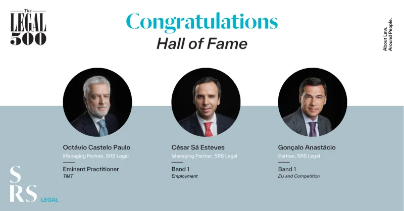 Hall of Fame: César Sá Esteves (Employment), Gonçalo Anastácio (EU and Competition) and Octávio Castelo Paulo (TMT).