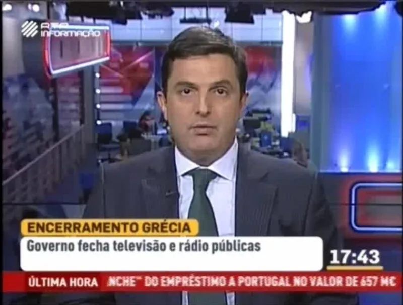 Luís Neto Galvão - Comentários em estúdio - Encerramento da TV Pública Grega Luís Neto Galvão - Comentários em estúdio - Encerramento da TV Pública Grega