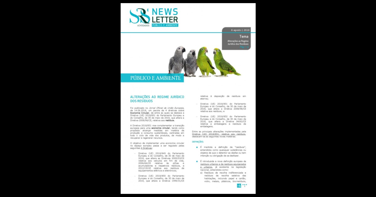 Newsletter Público e Ambiente | Alterações ao Regime Jurídico dos Resíduos