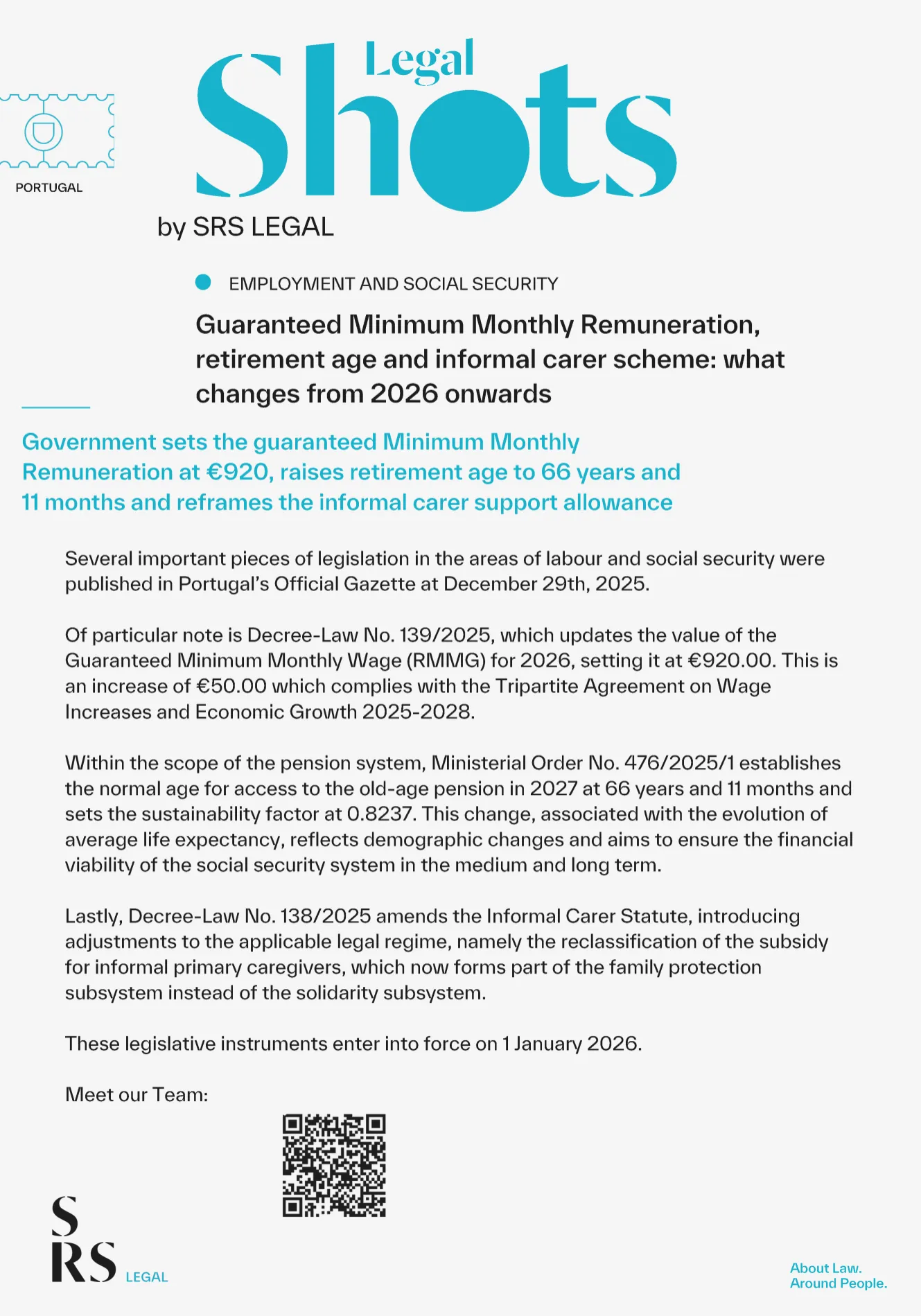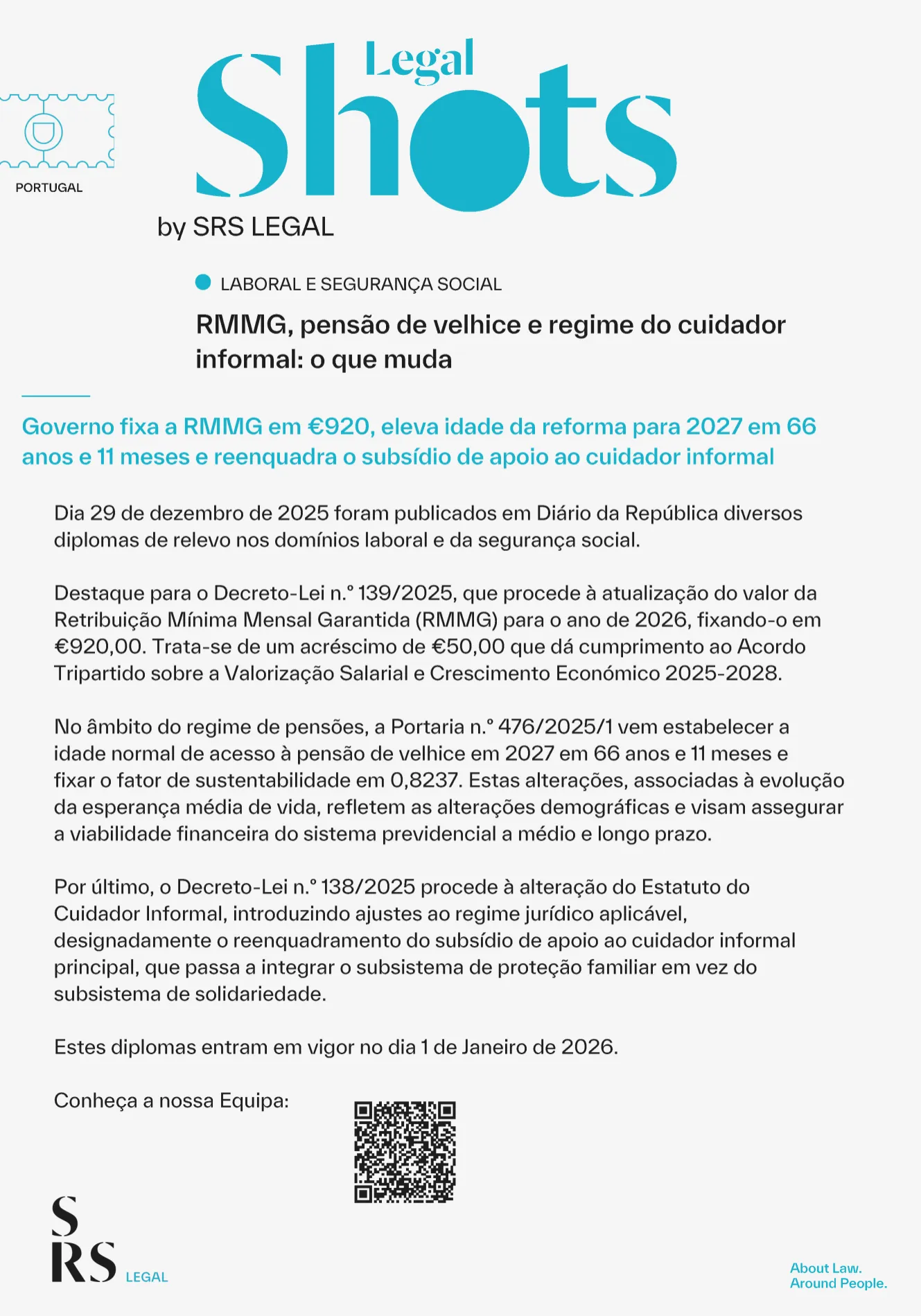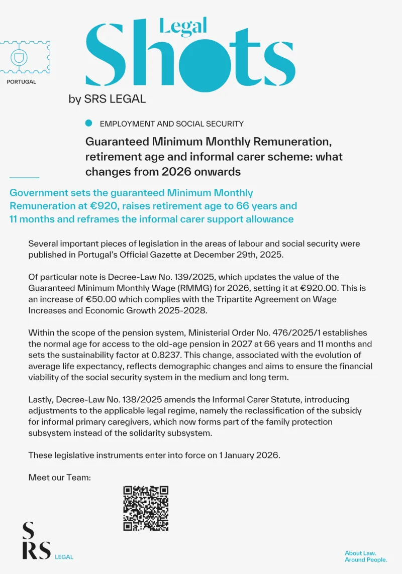 SRS Legal Shots - RMMG, pensão de velhice e regime do cuidador informal: o que muda